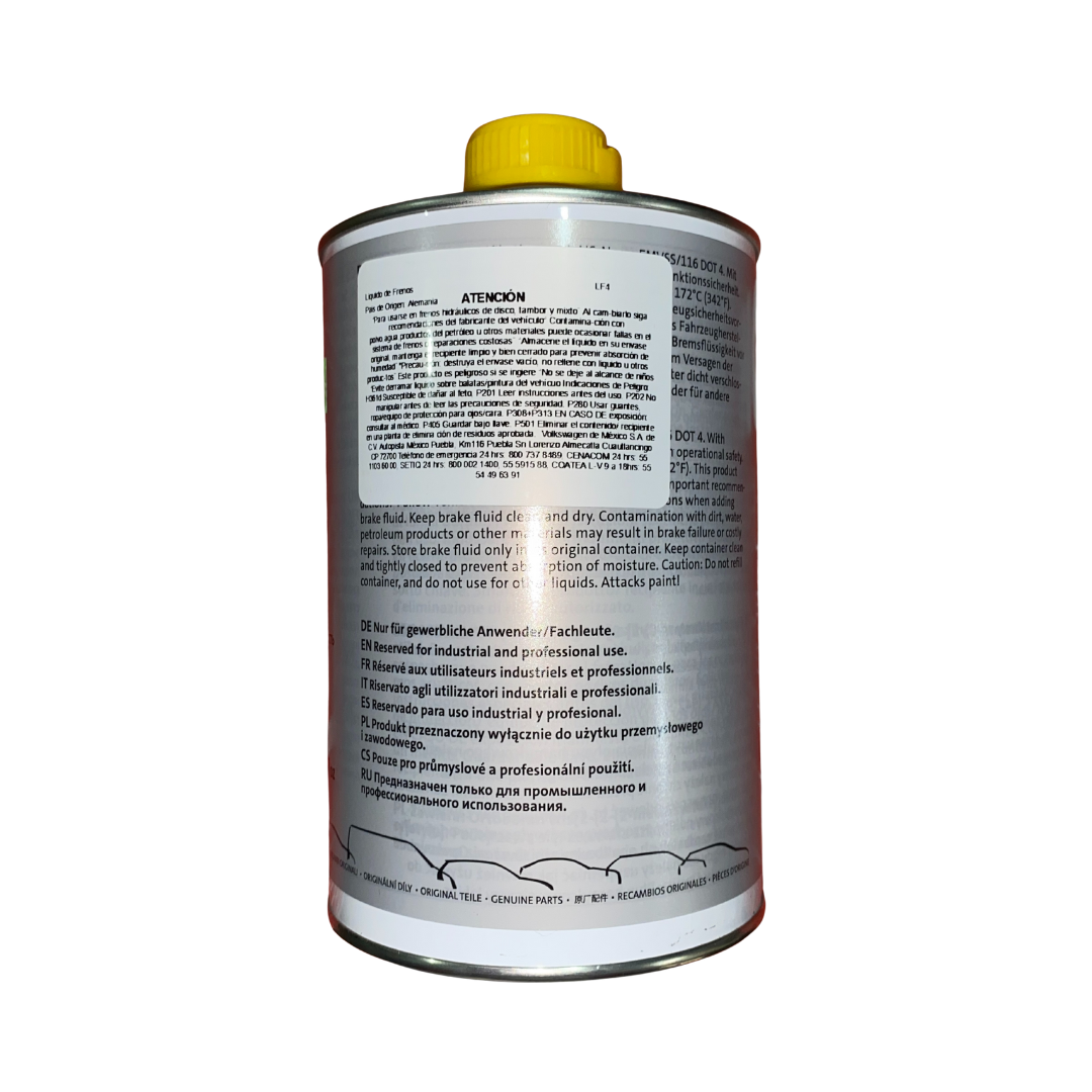 Este producto viene en presentación de 1 litro, ideal para realizar un cambio completo o una purga del sistema hidráulico sin necesidad de comprar múltiples envases. Como fluido genuino OEM, asegura una compatibilidad y calidad equivalentes a los utilizados originalmente en fábrica, lo que evita problemas como acumulación de impurezas, fallas en el sistema ABS o degradación prematura del caucho y metales dentro del circuito de freno.